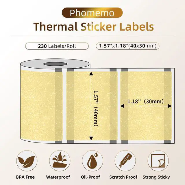 Label Details- Size: 1.57" X 1.18" (40mmX30mm),230 labels/Roll, Color: Golden. Perfect for Bake labels, price tags, category labels, package stickers, name tag and more.