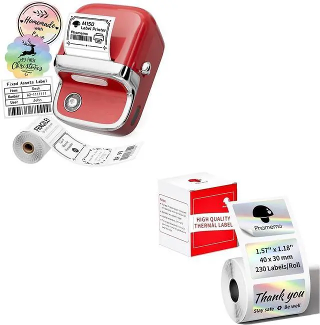 Widely UsePhomemo M150 Bluetooth adhesive label printer can print thermal labels with a width of 0.78" - 1.96" (20-50mm). Phomemo M150 portable label make is compatible with white, colored, and transparent labels. You can freely create food labels, address labels, file labels, gift labels. It's a wonderful gift for labeling presents on festive days for kids, family and friends.