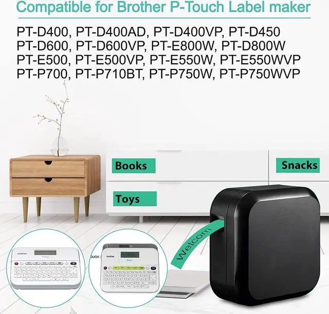 Compatible with Brother P-touch label makers:PT-1880, PT-1880c, PT-1880w, PT-18R, PT-2030, PT-D400, PT-D400AD, PT-D400VP, PT-D450, PT-1400, PT-1950, PT-2430PC, PT-2700, PT-2730, PT-2730VP, PT-D600, PT-D600VP, PT-P700, PT-P750W, PT-7600, PT-9200DX, PT-9200PC, PT-9400, PT-9500PC, PT-9600, PT-9700PC, PT-9800PCN, PT-E300, PT-E300VP, PT-E500, PT-E500VP, PT-E550W, PT-E550WVP, PT-H300, PT-H300LI, PT-H500LI, PT-P750WVP, PT-P900W, PT-P950NW, ST-1150, ST-1150DX, ST-5,PT-520, PT-530, PT-540