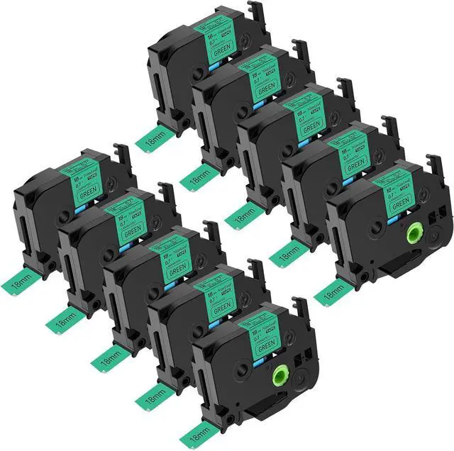 10 Pack Replacement for brother TZ-741 TZe-741 TZ741 TZe741 p touch label tape . Color: Black on Green; Size: 3/4 inch (18mm) x 26.2' (8m). Work well like genuine tapes, More affordable.