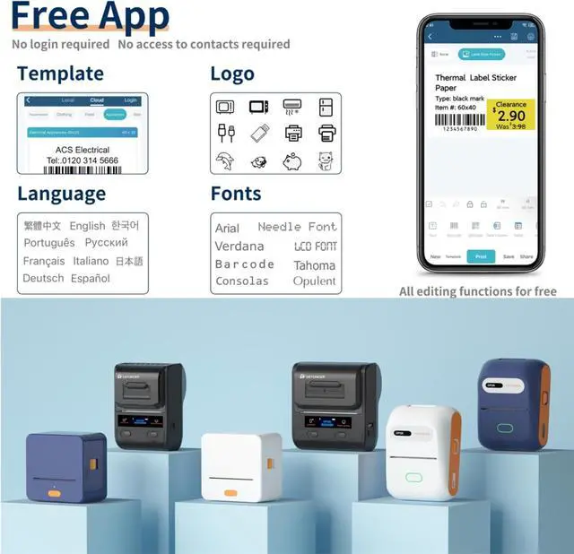 Powerful APP: Without login, registration, or subscription required,you can use a vast array of built-in templates for industrial, home, school, retail, jewellery, supermarket, clothing, food, cables and many other different scenarios.It also supports a variety of fonts, symbols, frames, and icons, giving you more freedom to customize your own personalized labels