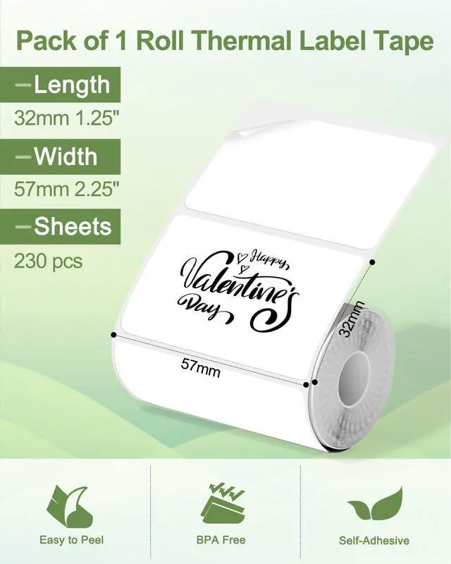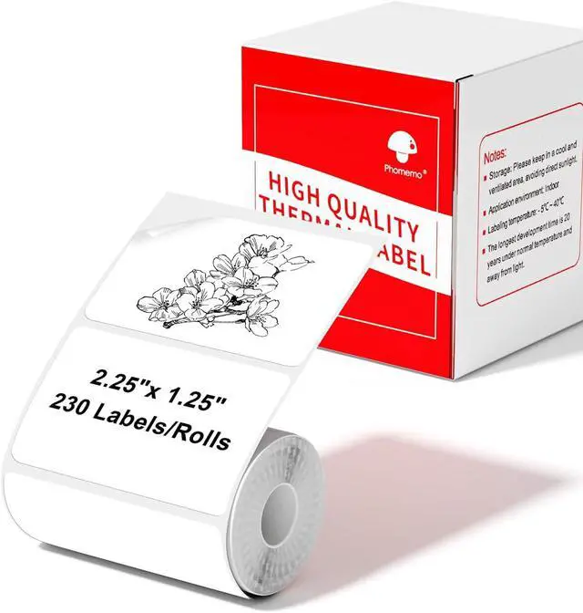 Product Description: 2.25"x 1.25"(57x32mm) | Labels per roll: 230 | Colour: Black on white Compatible with Phomemo M220/M200/M221 Label Printer.