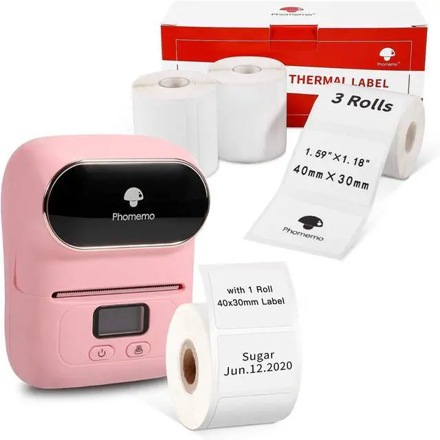 Phomemo M110 Bluetooth Label Maker with 3 Rolls 1.57"x1.18"(40x30mm) Thermal Labels- Thermal Label Maker Printer Apply to Labeling, Office, Cable, Retail, Barcode, Compatible with Android & iOS, Pink.