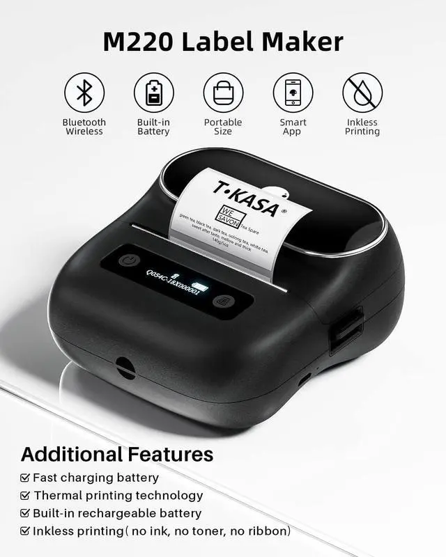 Long-Lasting Printing - With a powerful 2200 mAh battery, M220 thermal label printer can produce up to 36 continuous rolls of printing on a single charge. Our newly added auto-sleep mode reduces power consumption by 25%, extending the use time by 2-3 hours.