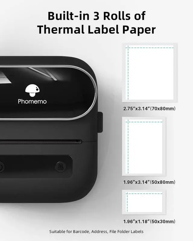 Inkless Thermal Printing - Are you tired of constantly replacing ink, toner, and ribbon for your label printer? Phomemo M220 label maker eliminates that problem with its advanced thermal technology. You only need to restock on labels, and our label maker with 3 roll of labels (including sizes 1.18x1.97 inch, 1.97x3.15 inch, and 2.76x3.15 inch).(Attention:The label maker only support print 0.78''- 3.14'' width labels,can't support print 4 x 6 shipping labels)