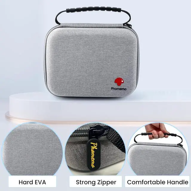 Perfect Fit - the bag is tailored to fit Phomemo portable printer, external dimensions: 7.48''x5.51''x2.99'' (L x W x H), Interior dimensions is: 7.08''x5.11''x2.75'' (L x W x H), 130g.