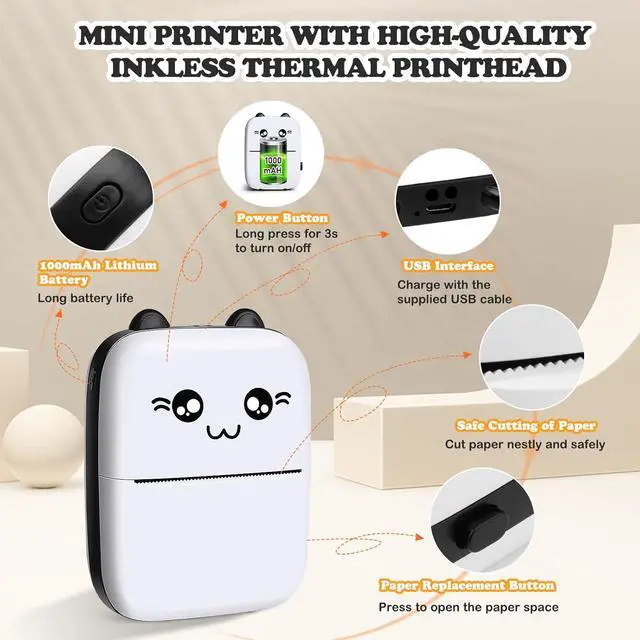 Widely Used for Daily Our 203dpi thermal mini printer with low power consumption, built-in 1000mAH lithium battery, fully charged can be used for 15 hours. Little mini printer for phone is suitable for home, office, travel, classroom, study. For Christmas gift.