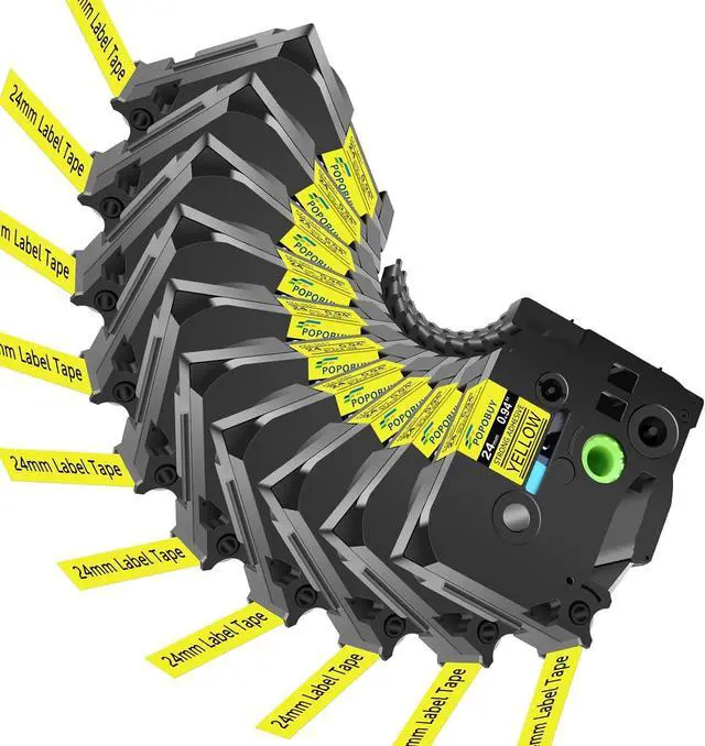 Package contains: 10 pack replacement compatible for ptouch TZ-S651 AZe-S651 24mm 0.94'' extra strong laminated label tapes; color: black on yellow; size: length: 8m (26.2 feet); width: 24mm (1 inch or 0.94'')