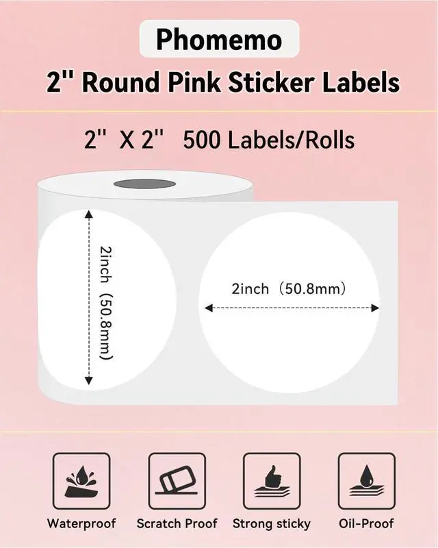 Specifications: Phomemo Labels--Round thermal sticker with the size: 2x2 circle round thermal printer label, 750 Labels/Roll. No ink or toner needed. The Labels Compatible with Phomemo 241bt D520BT label printer and other shipping label printer. Not Compatible with Phomemo M110, M120, M220, M221, M150, M250 Printer