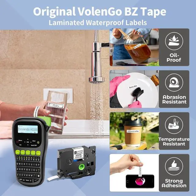- : VolenGo 12 mm 0.47 label maker machine with tape; Built-in encryption for clearer prints; Our laminated tapes withstand water, oill, abrasion and extreme temperatures without fading