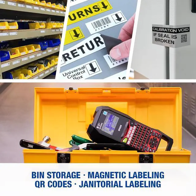 MAX TAPE WIDTH - Built for flexibility and compliance, the LW-PX700 supports custom labels up to 1" (24mm) wide. Commonly used with Epson LABELWORKS PX Tapes, including 212VTBWPX, 212BWPX, 224BWPX, 203YLBWPX, 205STBWPX, and 208B20BWPX for a wide range of industrial applications.