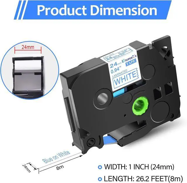 USUPERINK Alternative compatible label tapes replacement for brother ptouch label refill TZe-253 TZe253 TZ-253 TZ253 AZe-253 24mm 0.94 inch 1'' standard laminated label maker tapes.