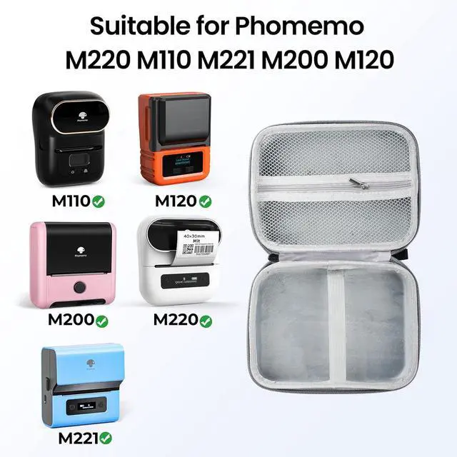 Thermal Bluetooth Label Printer - Never need the ink, toner, and ribbon again. Phomemo M220 barcode label printer prints using thermal technology, meaning you only need to restock on labels, Phomemo M220 label maker machine come with 100pcs 1.57"x1.18" label tapes.