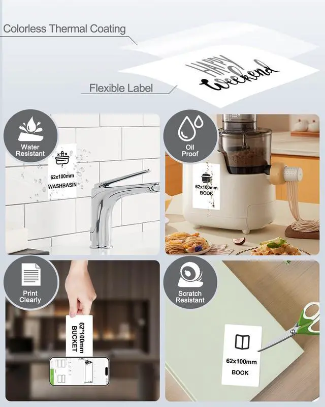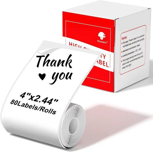 Product Description: 62mmx100mm (2.44" x 4") | Labels per Roll: 80 | Colour: Black on White, Compatible with Phomemo M220/M200/M221 Label Printer.