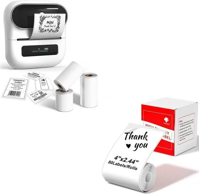 Thermal Label Printer- Never need the ink, toner, and ribbon again. This barcode label printer prints using thermal technology, meaning you only need to restock on labels, the thermal label maker come with 3 Rolls Labels(1 Roll 40x30mm label, 1 Roll 60x40mm label, 1 Roll 70x80mm label. It is recommended to choose other colors, which are more favorable