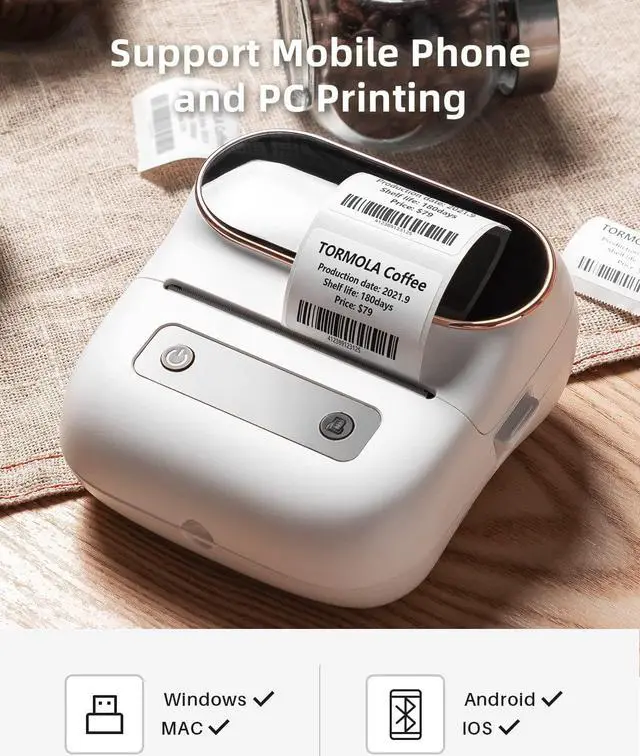 Thermal Label Printer- Never need the ink, toner, and ribbon again. This barcode label printer prints using thermal technology, meaning you only need to restock on labels, the thermal label maker come with 3 Rolls Labels(1 Roll 40x30mm label, 1 Roll 60x40mm label, 1 Roll 70x80mm label. It is recommended to choose other colors, which are more favorable