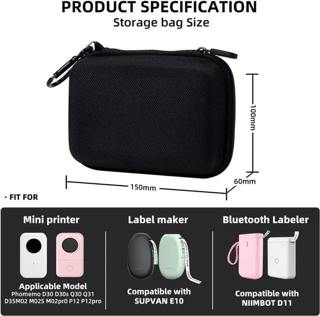 The Case Can Fully Protect D30 Label Maker: The Phomemo D30 Case is made of High-quality Nylon PU Synthetic, Which is water-proof, dust-proof, and crush resistant, providing excellent fall protection for the Phomemo D30 printer. The durable elastic strap inside fixes the label maker's stability. With good elasticity, it is convenient to take the label maker out and put it in.