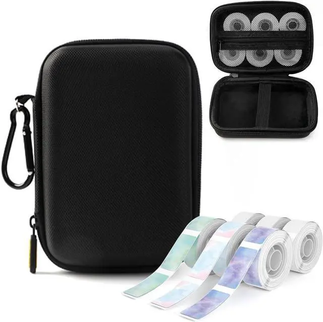 Package Include: 1x Black D30 Label Maker Machine with 1x Black Case and 4 Rolls of White Label Tape, 1 Rolls of Clear Label Tapes, 2 Rolls of Stary Pattern Label Tapes