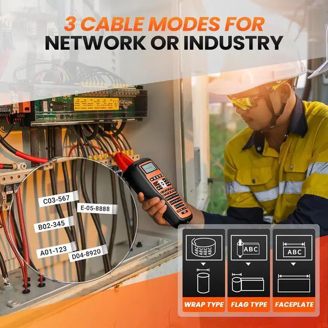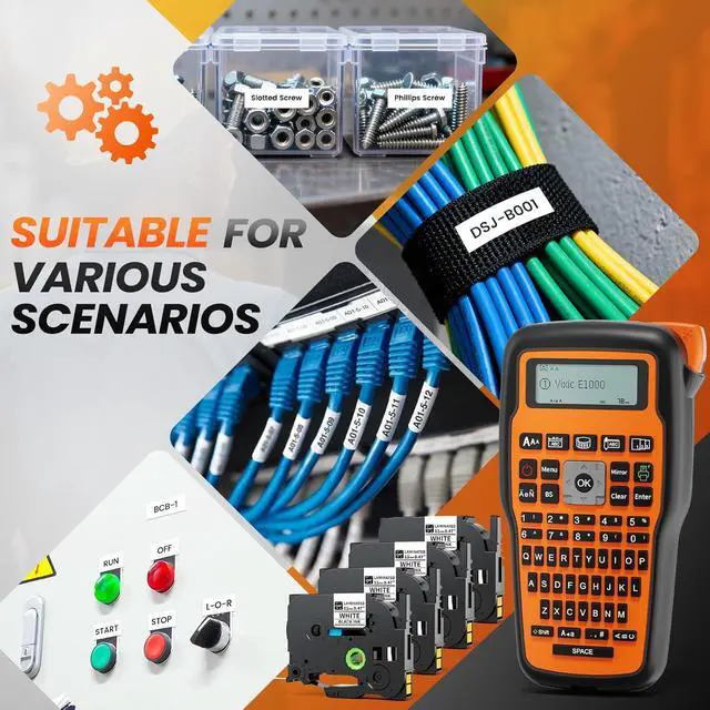 E1000 Wire and Cable Label Maker Designed for Demanding Electrical and Industrial Applications: This electrician label maker provides quick application keysCable Wrap, Cable Flag and Faceplate labelsfor clear and versatile cable identification. The wiring label maker functionality extends as a heat shrink label maker, that work with heat shrink tube labels (Mirror mode must be turned on), sold separately and available in Vixic store or below product description
