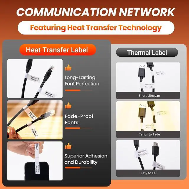Effortless Application, Zero Residue: Our labeling machine features split-back liner tape that peels off cleanly in one quick motion, with no adhesive left behind. Perfect for rapid, professional labeling on cables, tools, bins, and equipment in any industrial or workshop setting