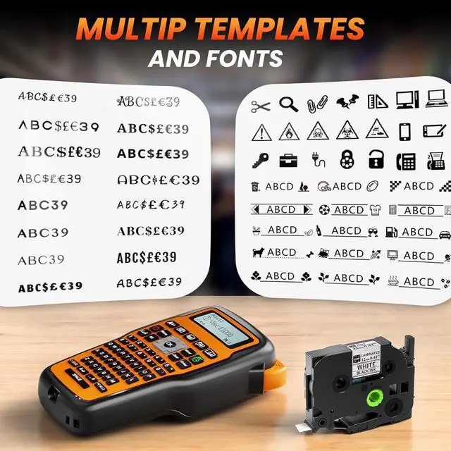 Create Professional, Custom Labels: The Vixic E1000 labeler machine with tape includes 500+ symbols, 100+ frames, and 16 fonts for complete design flexibility. Print barcodes, adjust text size (large/medium/small), and fit up to 4 lines per labelallowing you to create clear, organized, and customized identification for any industrial, workshop, or electrical application