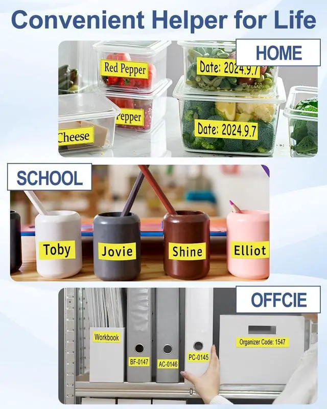 ApplicationsUses: Ideal for item classification, date labeling, operating instructions, pricing, personal name tags, DIY messages, and more. Applicable environments: Perfect for use in homes, offices, schools, hospitals, government agencies, hotels, restaurants, factories, banks, laboratories, warehouses, farms, repair shops, retail stores, and supermarkets.