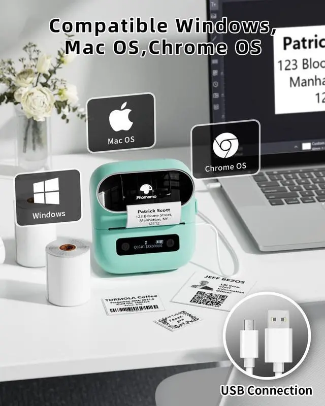 Easy to Use : This wireless buletooth sticker maker machine compatible with IOS, Android, Ipad, Windows10 and above System PC, Mac. Go GooglePlay /App Store download "Print Master", Connect it on the App by Bluetooth, this label maker App own massive templates, icons, fonts, Starting your label DIY trip. "Labelife" is PC'S edit App and connected by the cord come with m220 label maker.