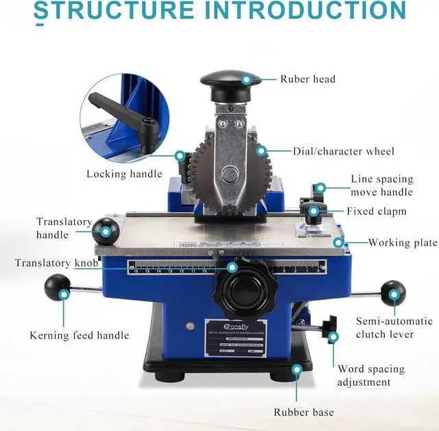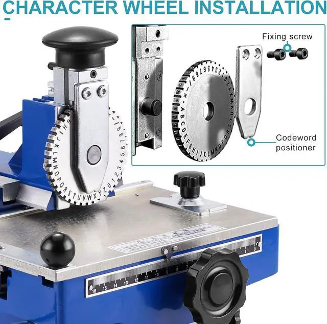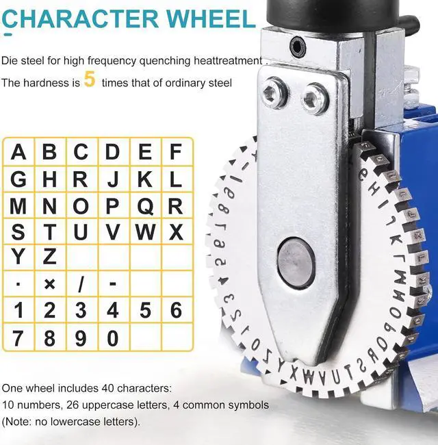 [Features]: The heat-treated steel wheel can be rotated to the required letters or numbers, and the typeface can be easily changed; the word spacing can be adjusted manually; different character heights can be realized by replacing the wheel.