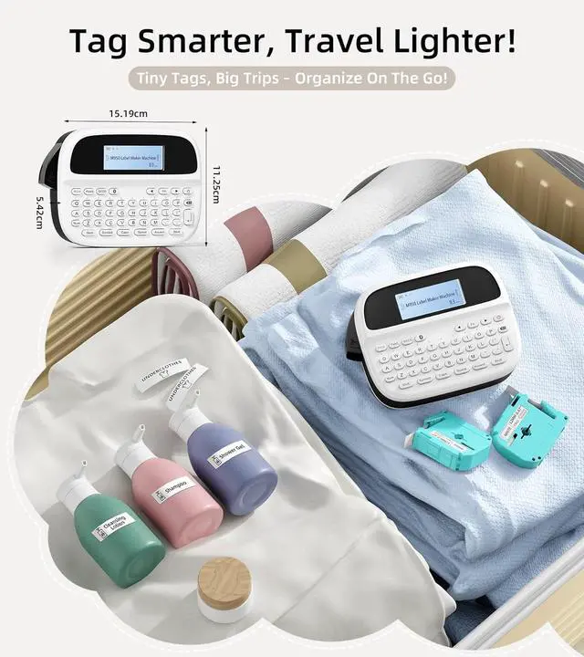 : M950 inkless label maker machine with tape is designed to meet a wide range of labeling needs in offices, schools, and homes. It offers endless possibilities for organization, allowing you to label storage containers, categorize personal care items, mark price tags, jewelry, office files, school supplies, clothing, and more