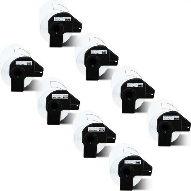 Package Includes: 8 roll KCMYTONER compatible for DK-1241 die-cut thermal direct large shipping label; color: black print on white tape; size: 4 in x 6 in (102mm x 152mm), 200 labels per roll.