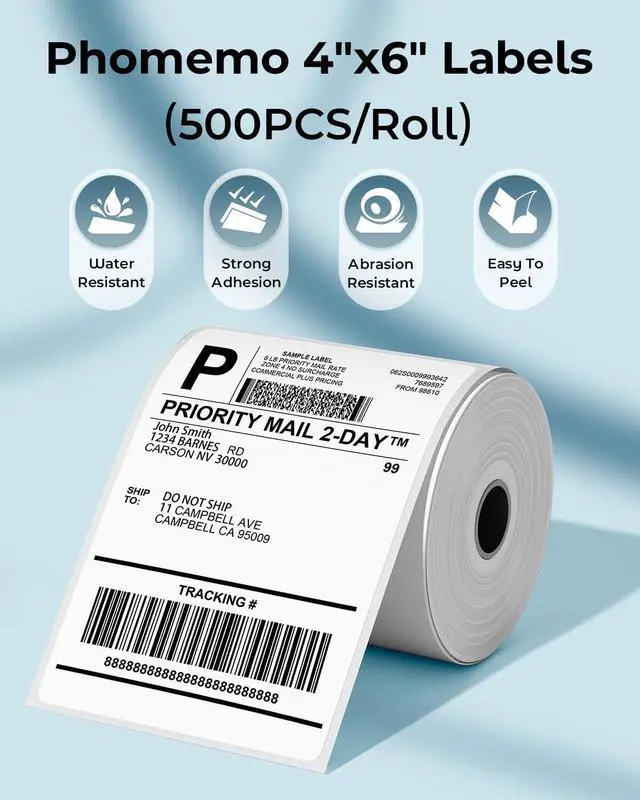 Strong MaterialPhomemo 4x6 thermal printer paper is waterproof, oil-resistant and scratch-proof, which keeps the printed information clear and fade-free at all times.