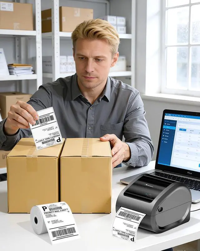 Built-in paper slot for space saving - The D530PRO shipping Label Printer has a built-in paper slot and label holder that can hold up to 500pcs of 4x6 inch label paper rolls, eliminating the need to purchase additional roll holders, saving space and keeping your desktop cleaner.