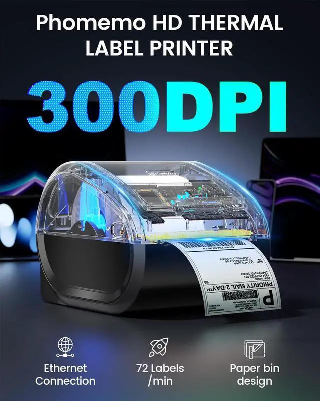 300DPI Fast Ultra HD Printing - D530pro Wireless Label Printer Equipped with high-precision print head, print clarity up to 300DPI, and the print speed is also up to 150mm/s, an average of 72 4x6 inch thermal labels can be printed per minute, in addition, this bluetooth desktop thermal printer also has a return to the paper towel function, to help you save every piece of the label, greatly saving your costs!