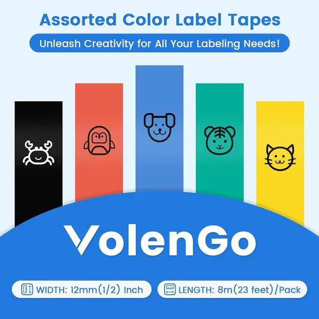 : 1* H1100 Label Maker; 1* Sample White Label Tape 12mm x 4m (0.47" x 13.12 ft. ); 5* Classic Color Label Tapes 12mm x 8m (0.47" x 26.24 ft. )