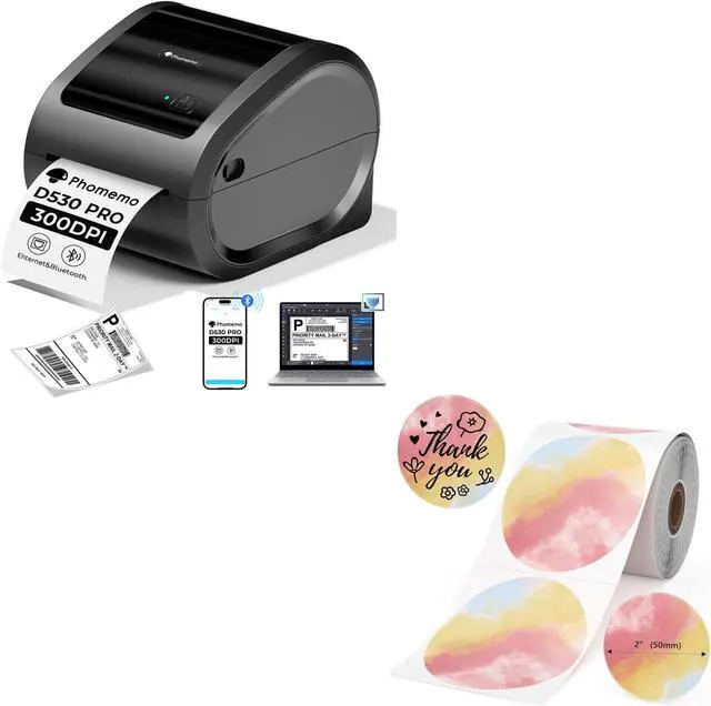 Wireless Ethernet Bluetooth Fast Connection - D530Pro 2025 new upgraded Bluetooth thermal label printer, equipped with high-speed Bluetooth connection, easy to operate within 10 meters can be through the computer and cell phone to print your labels, in addition to the Phomemo shipping label printer also supports the Ethernet/USB cable to connect with the computer.Perfect compatible with Android/iOS phones and Windows/macOS/Linux/ChromeOS computers.
