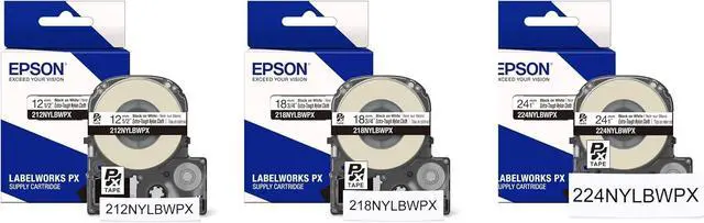 TAPE TYPES - Epson LABELWORKS manufactures a large variety of label maker tapes including standard industrial tape, shrink tube, vinyl, self-laminating overwrap, nylon, and specialty tapes. Each tape comes in a variety of sizes and colors