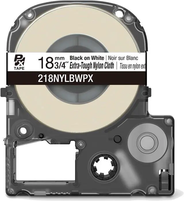 DIMENSIONS AND COLOR - This bundle included 3 sizes of Nylon Tape: 1/2" (12mm), 3/4" (18mm), 1" (24mm) in width. The label maker tape is white and prints with black text on nylon material with split-back liner, is 19' long.