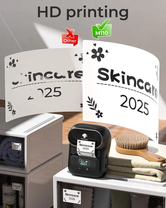 [Wireless Bluetooth & Portable Barcode Label Printer] - M110 bluetooth thermal label maker printer which is lightweight and portable can put into your bag. Quickly connect to your smartphone in 2 seconds via Bluetooth to your smartphone, phomemo Bluetooth label maker achieves convenient, smooth & fasts printing within 33 fts away from the smartphone.