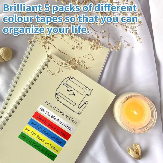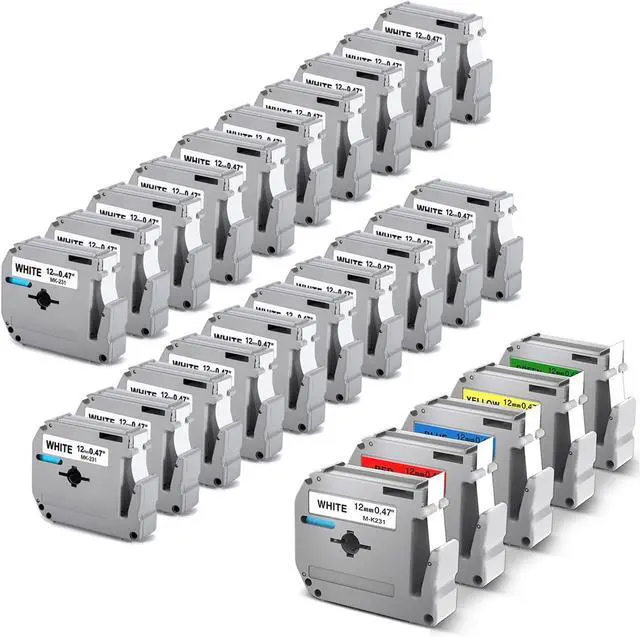 Total 25 Packs: 20 Packs White Compatible with Brother PTouch M-K231 12mm 1/2 0.47 M Tape M231 MK231 M-231 M-K231S EMK-231 Bundle with 5 Pack Color Combo Compatible with Brother P touch M Tape M Series Label Tapes ( MK231 Black on White, MK431 Black on Red, MK531 Black on Blue, MK631 Black on Yellow, MK731 Black on Green) 12mm 0.47 inch 1/2 in Each width, 26.2 Feet (8m) Each Length.