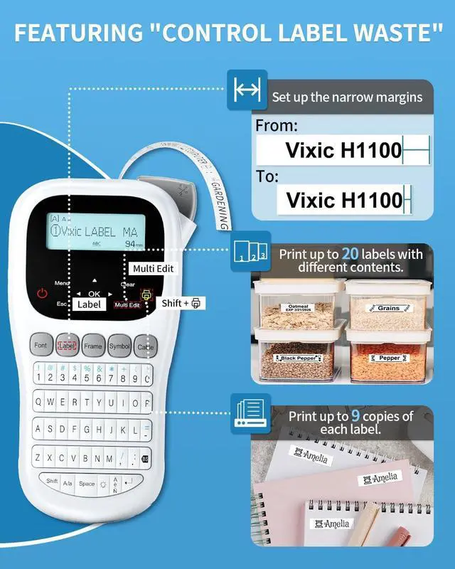 Easy to Read with Backlight Screen: Vixic H1100 portable label maker features LCD screen with built-in backlight, typing contents are effortless visibility in low-light conditions. One-Touch Keys that allow easy access to backlight, enjoy using handheld label maker even at night