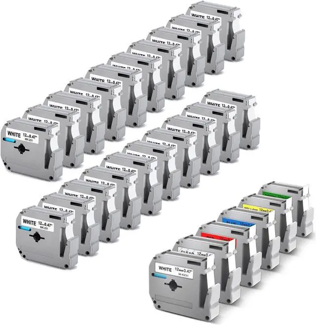 Total 26 Packs: 20 Packs White Compatible with Brother PTouch M-K231 12mm 1/2 0.47 M Tape M231 MK231 M-231 M-K231S EMK-231 Bundle with 6 Pack Color Combo Compatible with Brother P touch M Tape M Series Label Tapes ( MK131 Black on Clear, MK231 Black on White, MK431 Black on Red, MK531 Black on Blue, MK631 Black on Yellow, MK731 Black on Green) 12mm 0.47 inch 1/2 in Each width, 26.2 Feet (8m) Each Length.