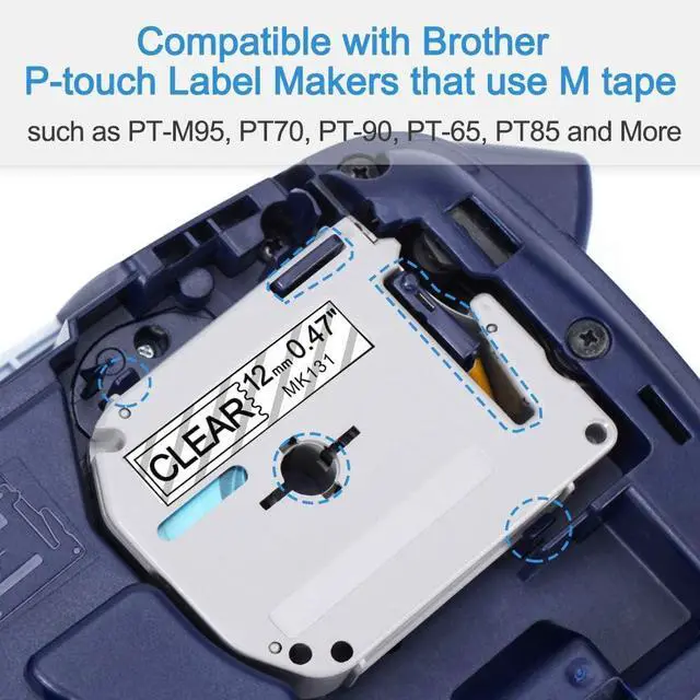 Compatible with Brother P touch Label Makers use M tape: PT-M95, PTM95, PT-70BM, PT-65, PT-45, PT-90, PT-80, PT-85, PT-70, PT-45M, PT-55BM, PT-55S, PT-65SB, PT-65SCCP, PT-65SL, PT-65VP, PT-70BBVP, PT-70BMH, PT-70HK, PT-70HOL, PT-70HOT, PT-70SP, PT-70SR, PT-80SCCP and more.