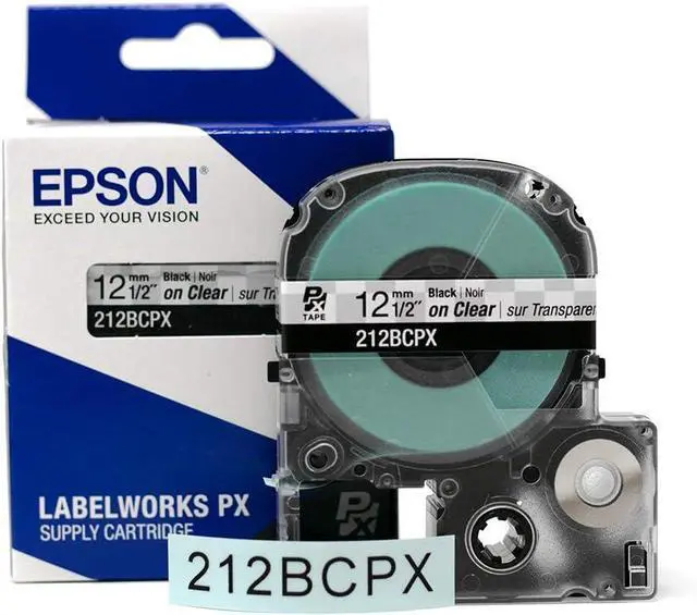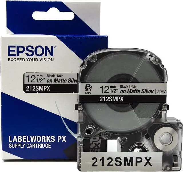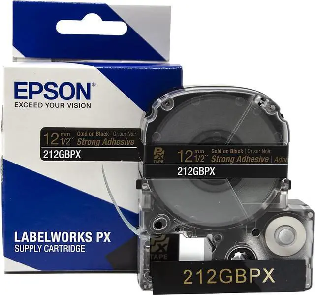 DIMENSIONS AND COLORS - This standard industrial tape is 1/2" (12mm) in width and 30 ft in length. The label maker tapes are clear with black text, silver matte with black text, clear with gold text, and black with gold text.