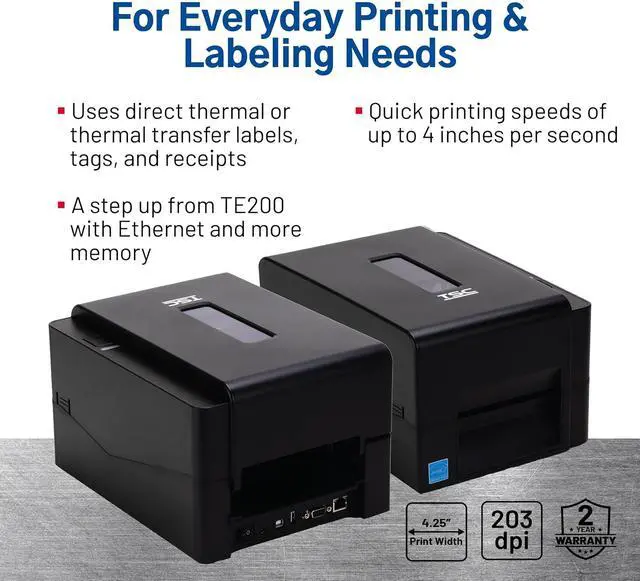 Printer Upgrade: The TE210 label printer model is a step up from the TE200 with more memory and Ethernet, USB, USB host, and RS232 connectivity included. We offer support and services to help simplify your custom labeling and tracking needs.