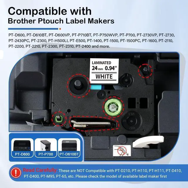 [Compatibility] Compatible with Brother Ptouch label makers that use up to 24mm 1 inch TZe label tapes: PTD600, PT-D600VP, PT-P750W, PT-P700, PT-P910BT, PT-2730VP, PT-H500LI, PT-2730, PT-2430PC, PT-2300, PT-E500, PT-1400, PT-1500, PT-1500PC, PT-1600, PT-2110, PT-2200, PT-2210, PT-2300, PT-2310, PT-2400 and more.