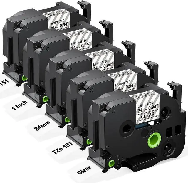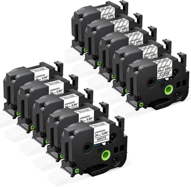 [Totally 10-Pack] 5 packs compatible with Brother TZe-251 black on white tape and 5 packs TZe-151 black on clear label tape. Width: 1 inch (24mm 0.94 inch). Length for each tape: 26.2 feet (8 meter).