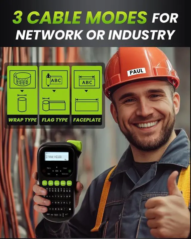 Industrial Label Maker Supports Cable Modes: The H1100 cable label maker has a built-in cable wrap, cable flag, and faceplate keys, access 16 fonts and over 800 symbols to customize your labels in your worksite or workspace. This label maker with tape can print up to 4 lines of text on labels up to 12mm 0.47 inch wide, providing great convenience in organizing and managing cables or wires