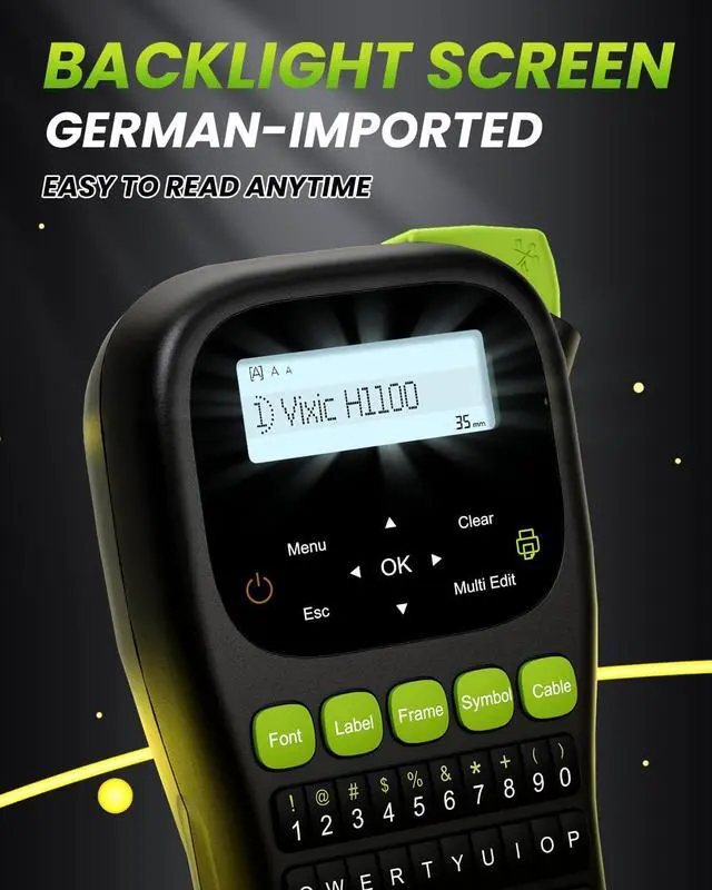 Enhanced Readability with Backlight Screen: The Vixic H1100 portable label maker, equipped with a German-imported backlit LCD screen, offers effortless visibility of typing content in low-light conditions. Enjoy using this handheld label maker even at night