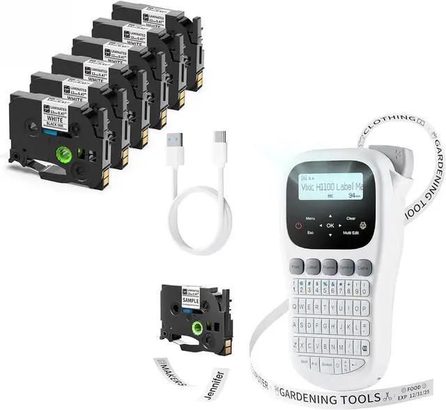 Personalize Your Labels with the Vixic H1100 Lable Maker's Creative Functions: Choose from 16 unique fonts, 100+ frames, 800+ symbols, 6 patterns, and barcode printing capability. Print up to 4 lines on labels up to 12mm wide. Cable mode supports wrap and flag options. Easily resize letters to small, medium, or large sizes Package Included: 1 x H1100 label
