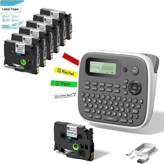 Vixic D210S Label Maker Machine with Tape, Easy to Use for All Ages: No need for mobile device connections! The D210S label maker with keyboard simplifies the process for everyone, including kids and the elderly. From powering on to editing and printing, it only takes 20 seconds! Experience quick and effortless labeling